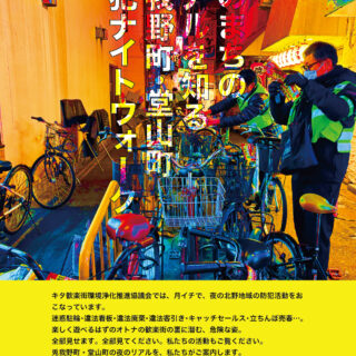 「夜のまちのリアルを知る 兎我野町・堂山町 防犯ナイトウォーク」昨年11月に初めて開催して、意外なほどたくさんの方にご参加いただきました。この春も実施・募集します。昼間とはまったく違う夜の兎我野町・堂山町を、実際に歩いて感じてみてください。...